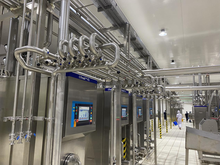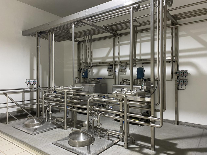 主要包括植物油和糖漿、巧克力儲存輸送處理系統(tǒng)、配料系統(tǒng)、巴氏系統(tǒng)、老化系統(tǒng)、巧克力及果粒添加系統(tǒng)、CIP站、能源回收系統(tǒng)、蒸煮系統(tǒng)、熱水系統(tǒng)等區(qū)域。