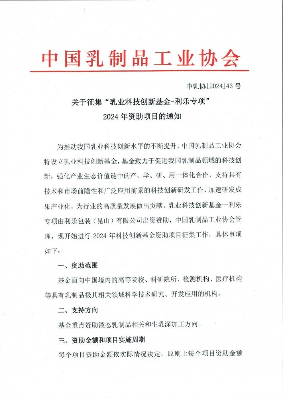 • 關(guān)于征集“乳業(yè)科技創(chuàng)新基金-利樂專項”2024年資助項目的通知